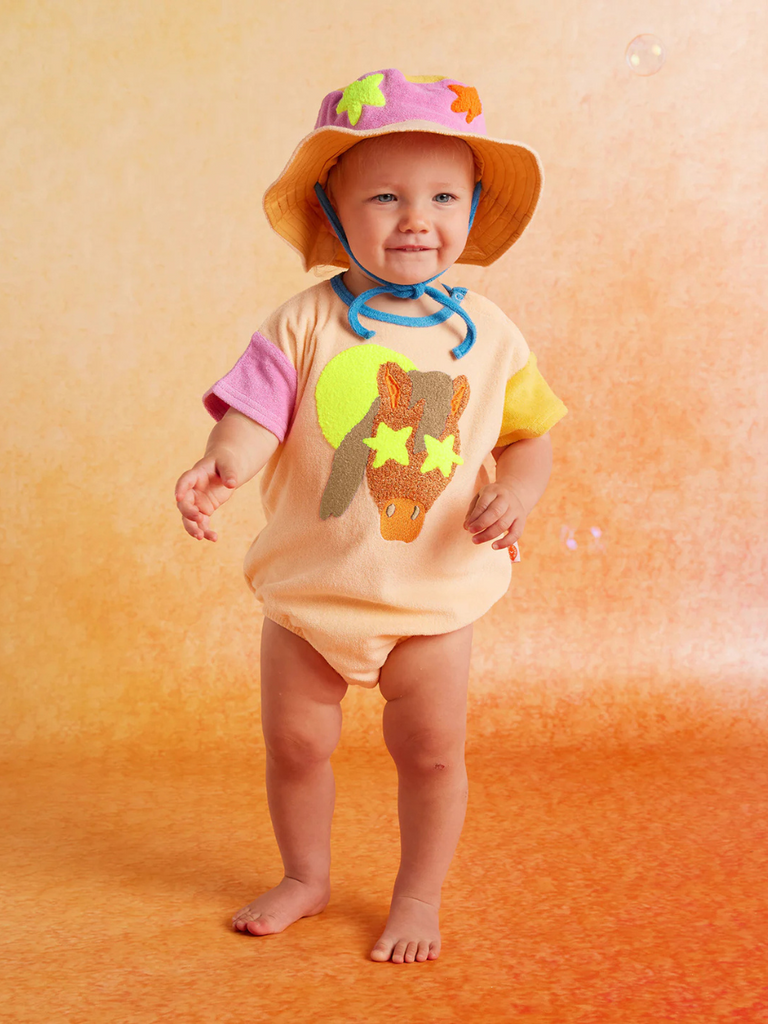 Elevate your sunny adventures with our Giddy Up Terry Kids Bucket Hat the ultimate blend of fun and sun protection!