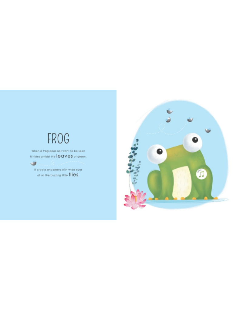 A sound book with delicately coloured pastel illustrations and sweet rhymes to introduce little ones to animal sounds.