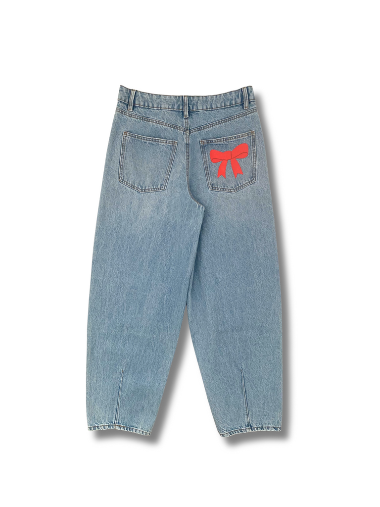 Red Bow Barrel Jeans - Light Blue Denim
