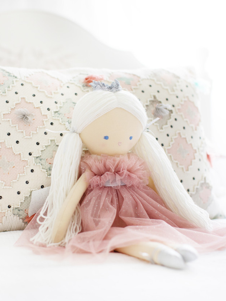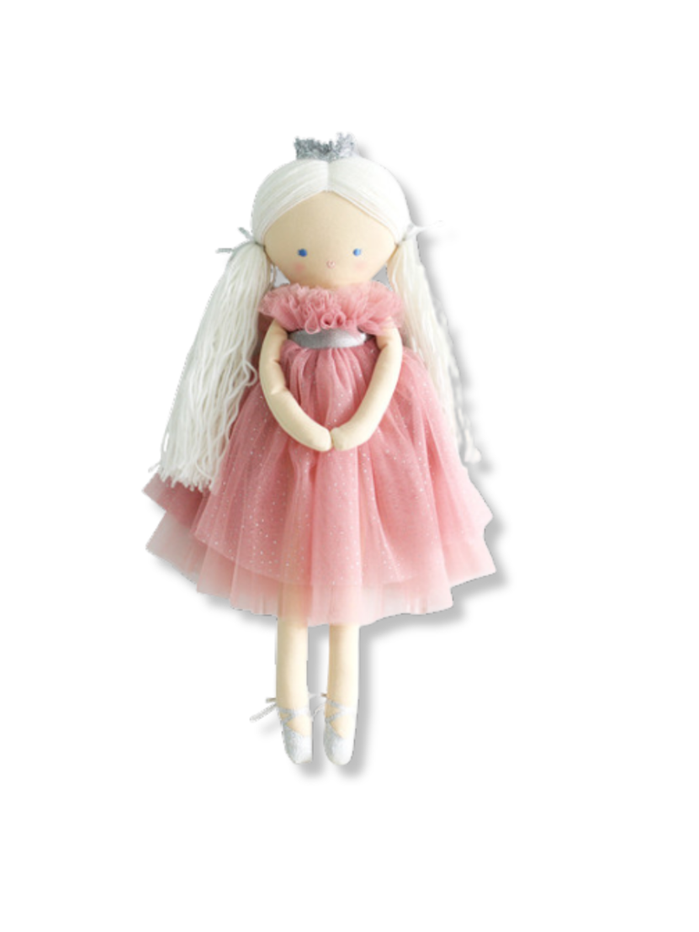 Her sparkling crown and shoes complete the look, while her delicately embroidered face and soft body make her a keepsake-quality doll to love and cherish. She also comes beautifully packaged in an Alimrose cotton doll bag making her the perfect gift to treasure.