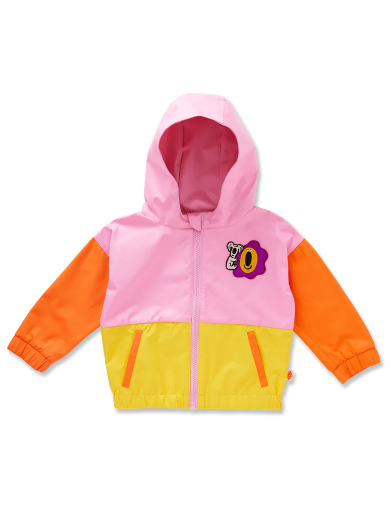 This water-resistant spray jacket is a colour-blocked cutie with playful patches and plenty of room to move.