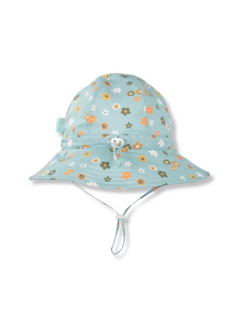 Keep little ones shaded in style with this wide-brim sunhat, featuring the sweetest collection of tiny flowers on both the outside and inner brim, designed by Jacinta Weir from Two Little Ducklings. A fresh and modern floral print that’s perfect for every sunny day.