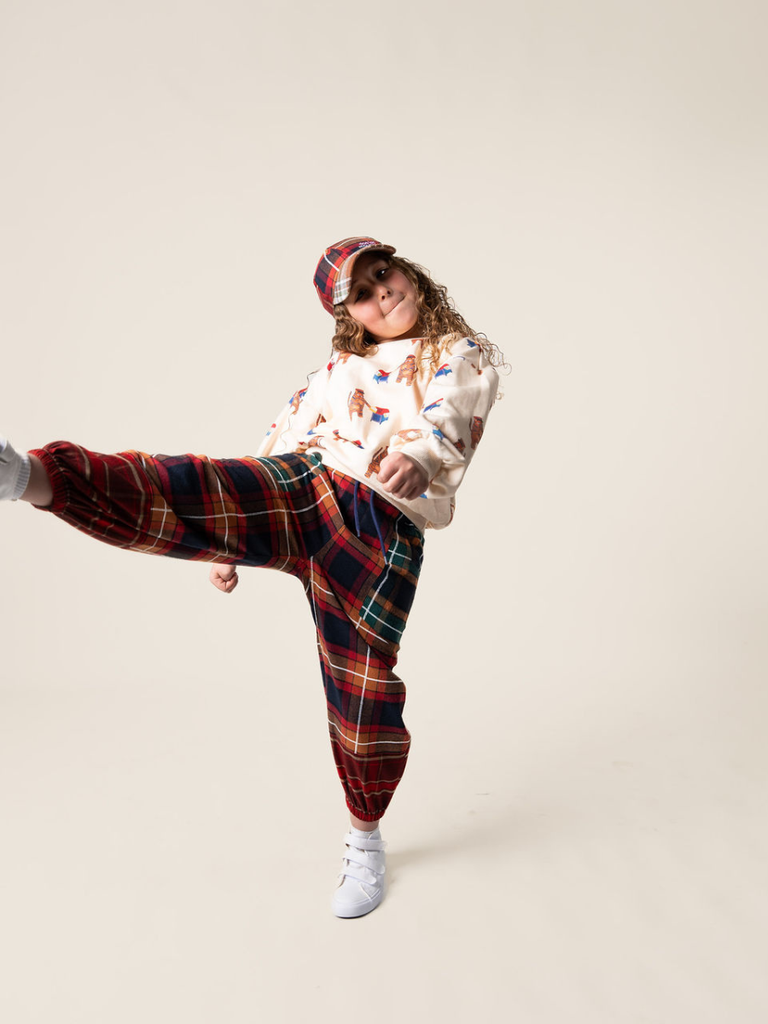 Covered in character and fun, this French Terry Pullover features an all over Tiger the Postie print set against a soft neutral base. The repeated illustrated artwork creates a bold yet easy to style everyday piece, perfect for curious minds.