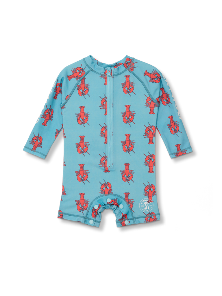 Made using certified recycled yarnUPF Sun Protection Factor of 50+Quick dryLong sleeves for optimum coverageLightweight, breathable fabricShort legs for the perfect balance of protection and comfortLined through bodyVislon zip with guard for easy accessDomed on inside legs for easy nappy changeHigh chlorine resistant ratingNo harmful chemicals