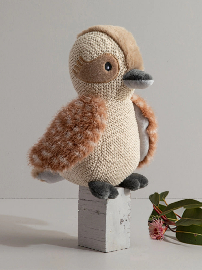 Delight little ones and parents with our charming Kenny the Kookaburra Knitted Toy. Beautifully crafted from mostly cotton with a pearl knit finish, they offer a lovely handcrafted feel. Each features a gentle rattle for playtime and comes with a sweet name label - perfect for cuddles, keepsakes, or gifting.