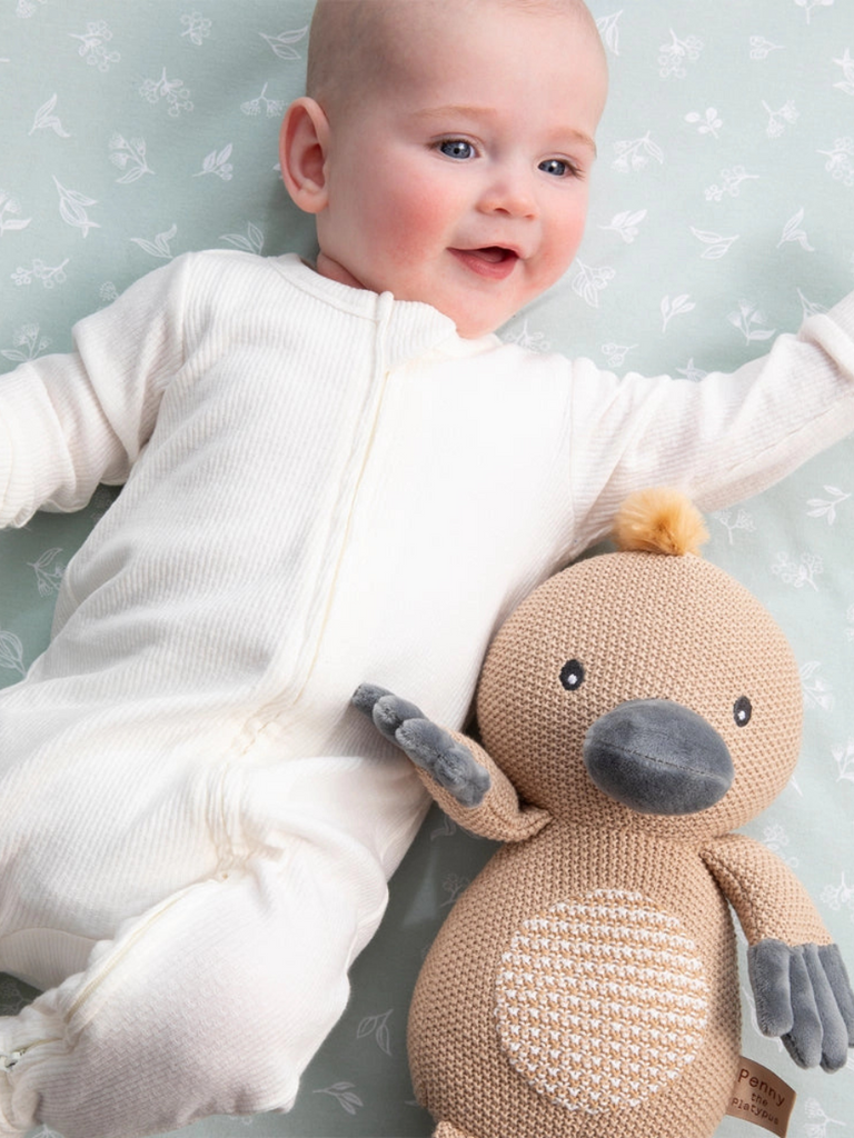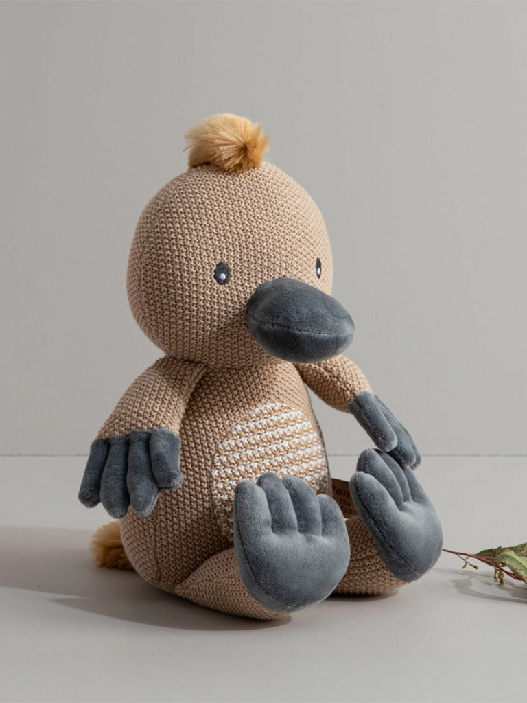 Delight little ones and parents with our charming Penny the Platypus Knitted Toy. Beautifully crafted from mostly cotton with a pearl knit finish, they offer a lovely handcrafted feel. Each features a gentle rattle for playtime and comes with a sweet name label - perfect for cuddles, keepsakes, or gifting.