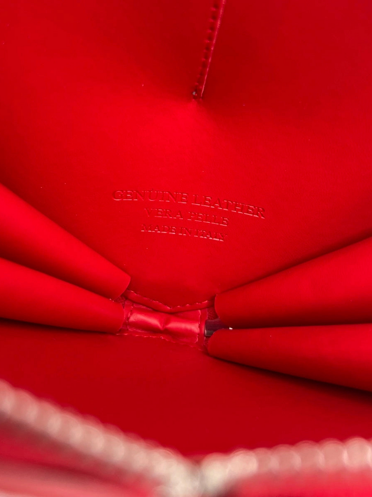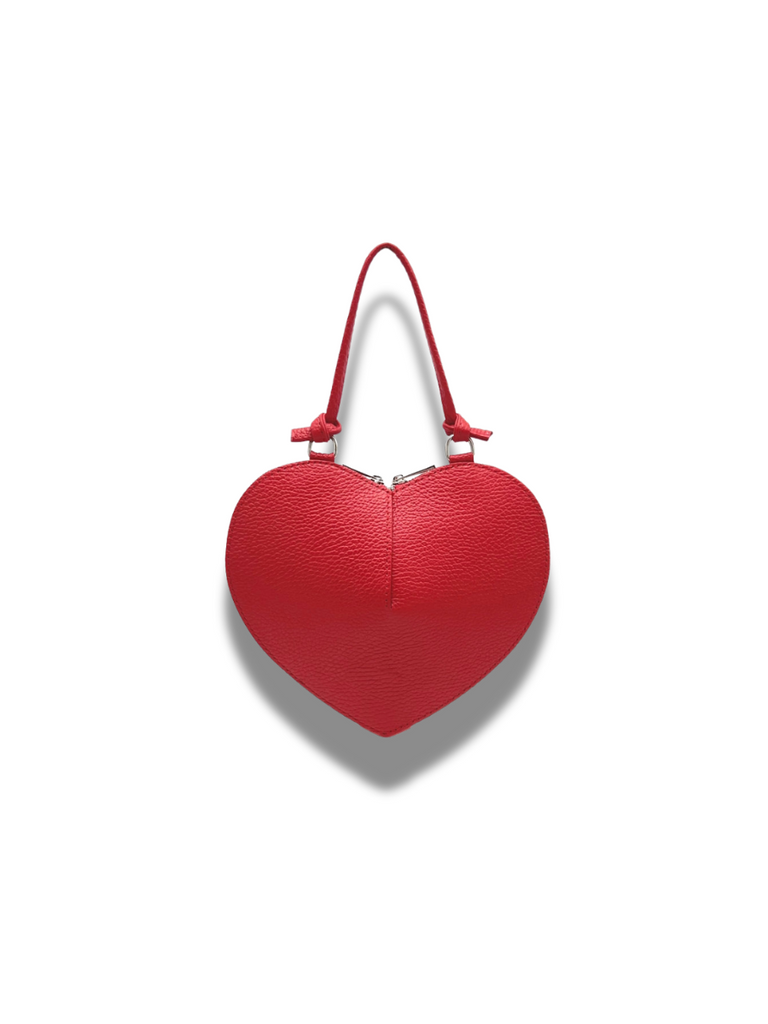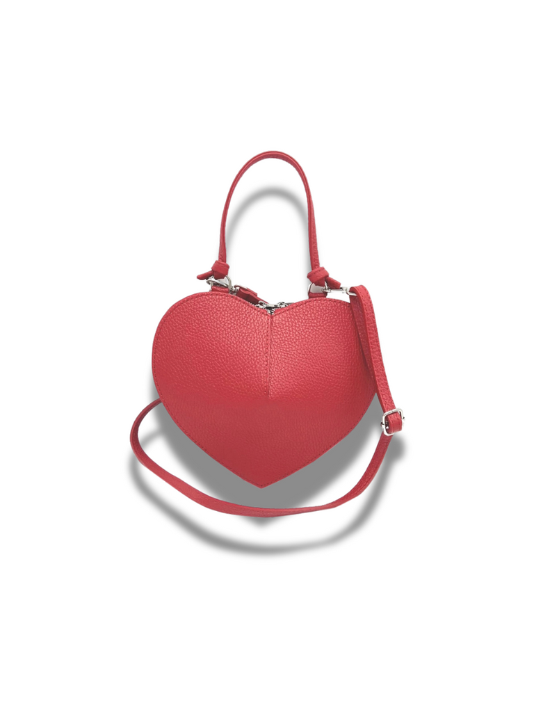 Meet the Mia Heart Bag – where playful meets polished. Crafted from pebbled Italian leather in a bold cherry red, this mini statement piece is all heart (literally).